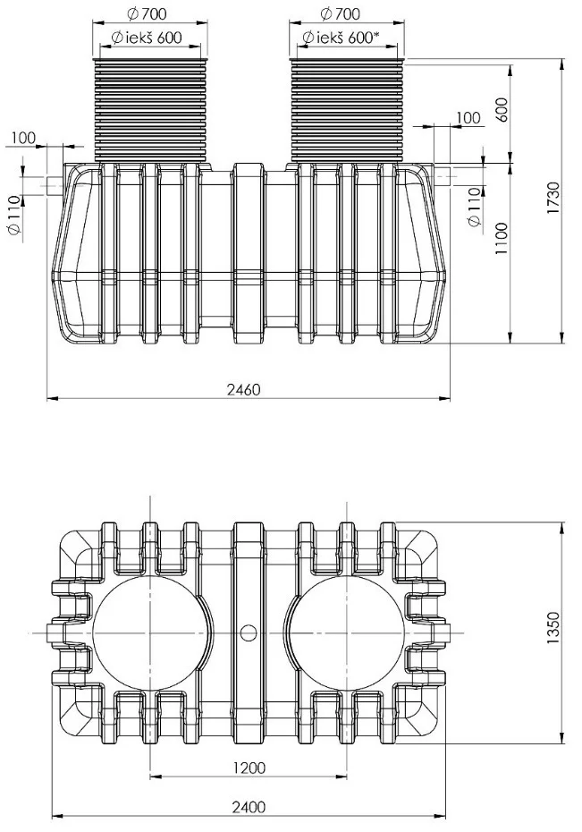 - Septikul on Ø110 mm sisse ja väljaviik